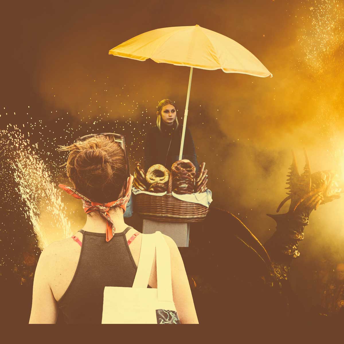 - A program coded by Farsad himself with a specific algorithm creates 35k collages by placing random objects without overlapping the important parts of the other objects, then random backgrounds, shapes and filters are added to give the images a more artistic feel.